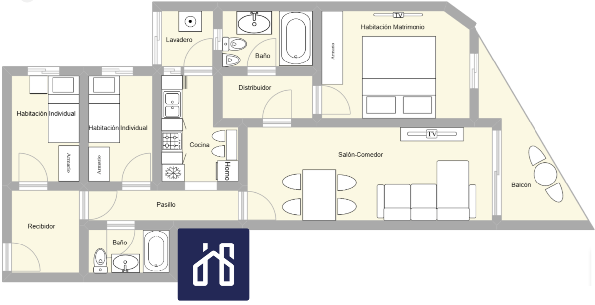 La zona de descanso cuenta con tres habitaciones, una de ellas una confortable habitación tipo suite con baño completo incorporado, además de un segundo baño completo de 3 piezas con bañera.