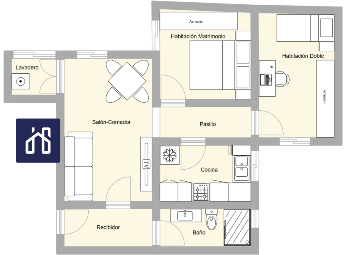 Cuenta con 2 habitaciones dobles, ideales para descanso o despacho, un amplio salón-comedor, cocina independiente, y un baño completo con plato de ducha. Dispone también de lavadero y altillo, perfectos para almacenamiento.