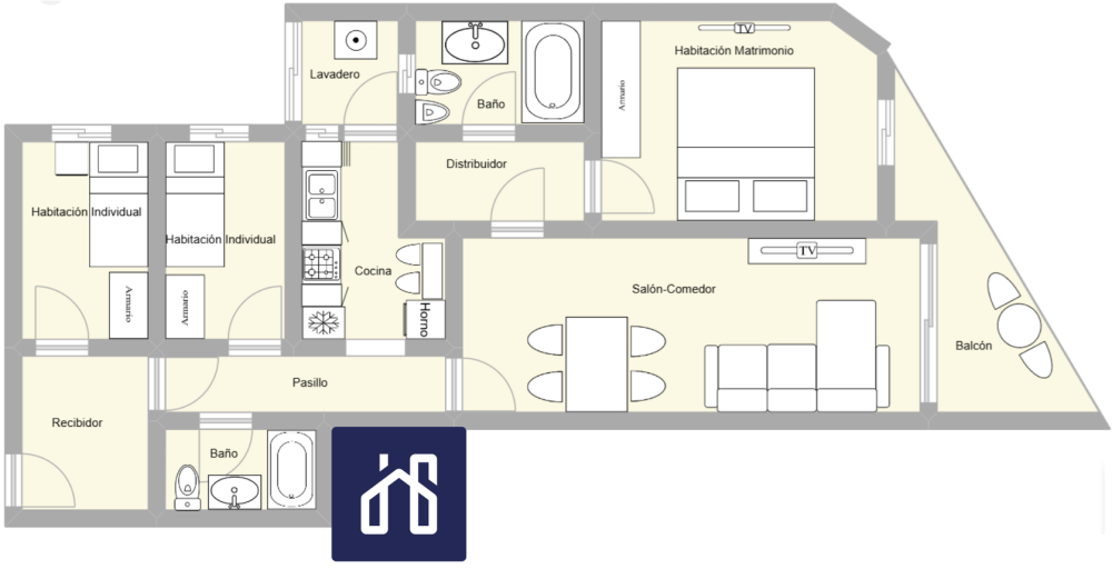 La zona de descanso cuenta con tres habitaciones, una de ellas una confortable habitación tipo suite con baño completo incorporado, además de un segundo baño completo de 3 piezas con bañera.